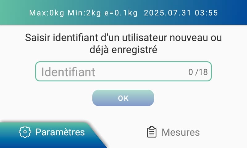 Sélectionnez "Texte", et saisissez le texte (jusqu'à 23 caractères) à l'aide de l'écran tactile :