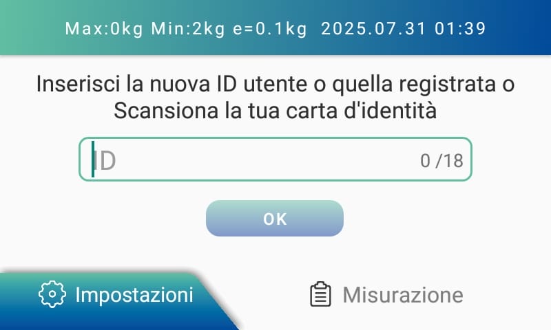 Seleziona "Testo" e digita il testo (fino a 23 caratteri) usando il touchscreen: