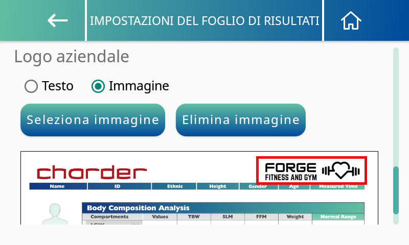 Per personalizzare il logo che appare in alto a destra della Scheda dei Risultati: