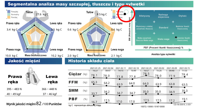 Po zakończeniu analizy składu ciała za pomocą MA601 lub MA801, wyniki pomiarów można wydrukować na papierze za pomocą kompatybilnej drukarki (kompatybilność ze sterownikiem PCL5+).