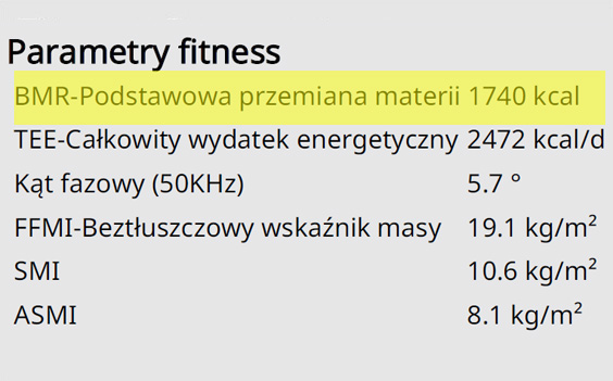 BMR 1740 x PAL 1.4 = 2436 kcal dziennie
