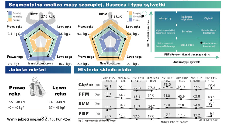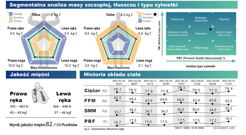 Po zakończeniu analizy składu ciała za pomocą MA601 lub MA801, wyniki pomiarów można wydrukować na papierze za pomocą kompatybilnej drukarki (kompatybilność ze sterownikiem PCL5+).