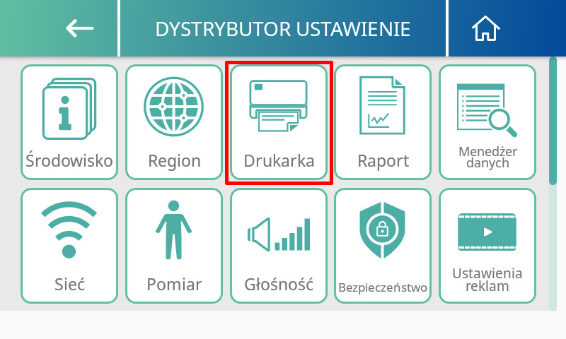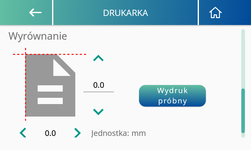 Aby dostosować pozycję wydruku Arkusza Wyników, wejdź w ustawienia na urządzeniu. (W przykładzie użyto MA601)